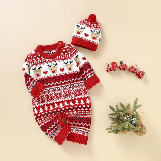Baby Knitted Christmas Sweater Jumpsuit with Hat -178