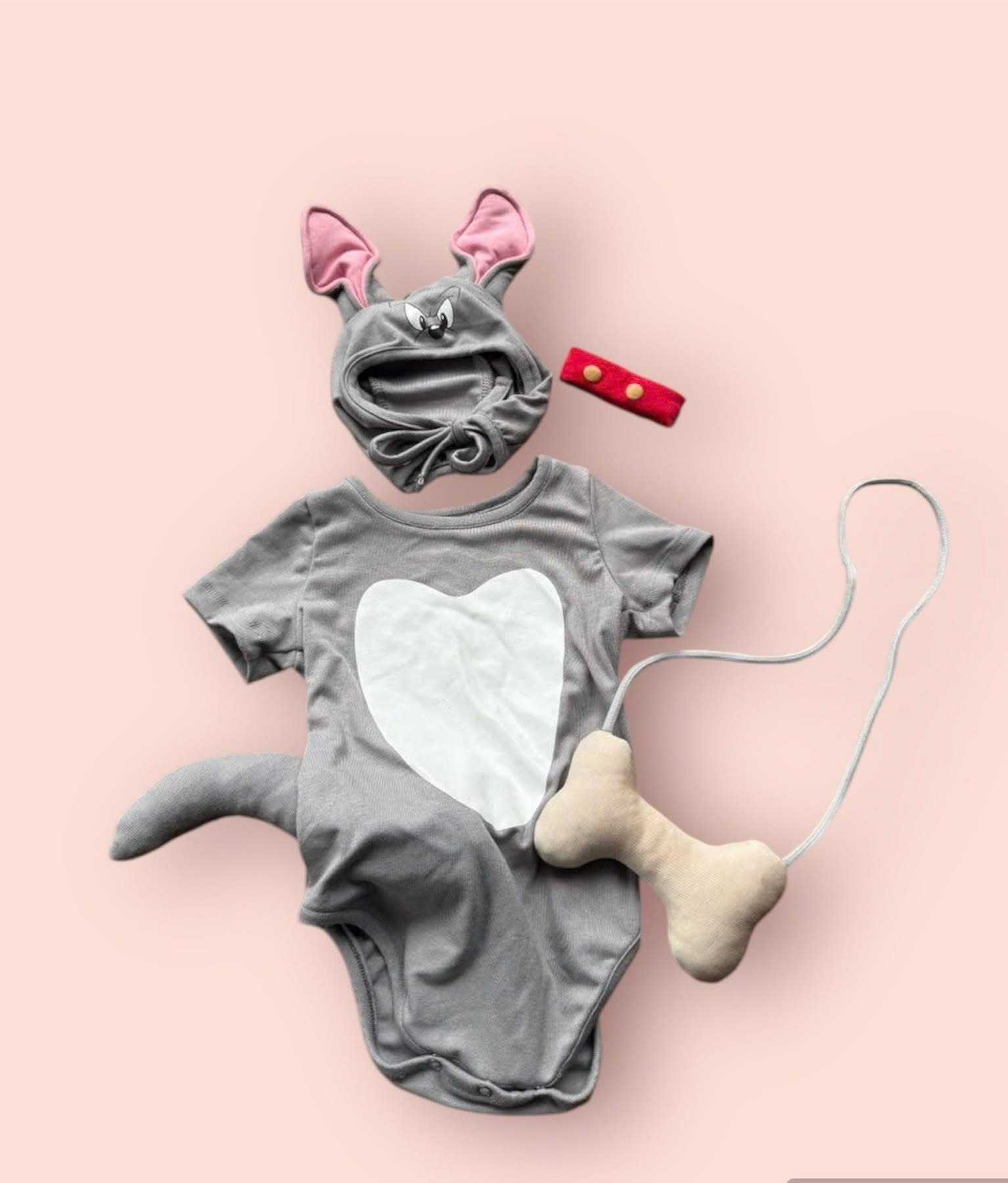 Introducing the Baby Boy Costume Spike Onesie-217 – a delightful 3-piece set inspired by the iconic Spike from Tom and Jerry, crafted for baby comfort and playful charm. Made from OEKO-TEX® certified soft cotton blend, this adorable ensemble includes a onesie, coordinating hat, and bone-themed accessory – perfect for photoshoots, birthdays, or everyday adventures. Trusted by parents for its safety, durability, and timeless design, add to cart now to give your little one a touch of classic cartoon magic!