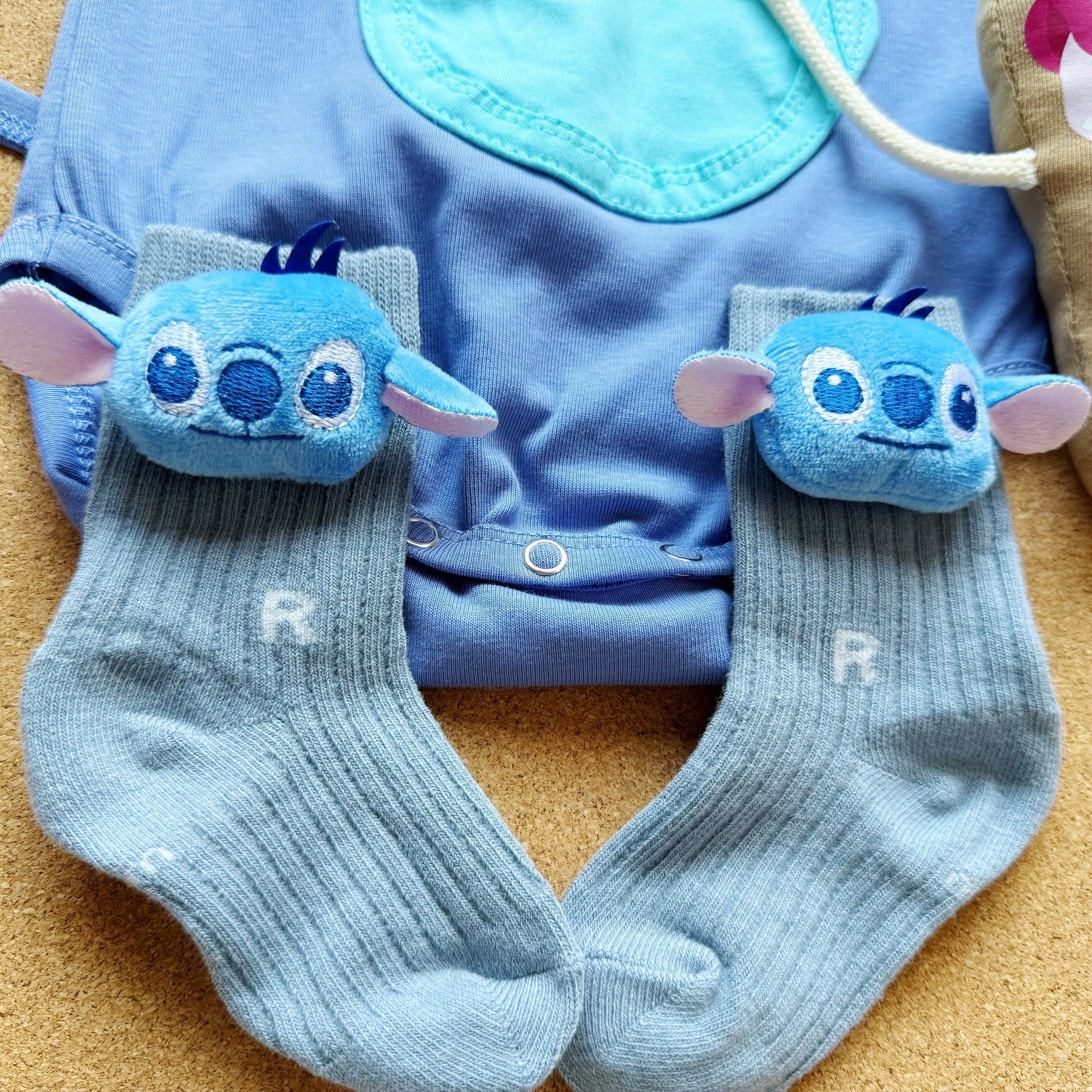 Introducing the Stitch Newborn Baby Onesie 4-Piece Set-207: a complete outfit (romper, matching hat, socks, plus an ice cream-shaped mini bag accessory) tailored for babies aged Newborn to 2 years. Crafted with baby-safe, skin-gentle fabric, this set balances all-day comfort, adorable Stitch-themed charm, and practicality—perfect for daily wear, playdates, or casual outings. The full 4-piece design eliminates match hassle, while kid-friendly materials meet US safety standards. Trustworthy, cute, and convenient, this set is a must-have—add to your cart now for a seamless, delightful baby wardrobe pick.