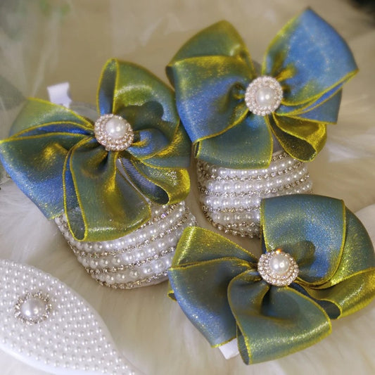 Handmade Newborn Baby Pearly Shoes with Headband Gift Set of 2