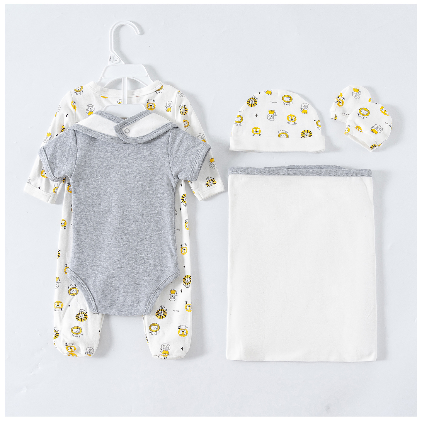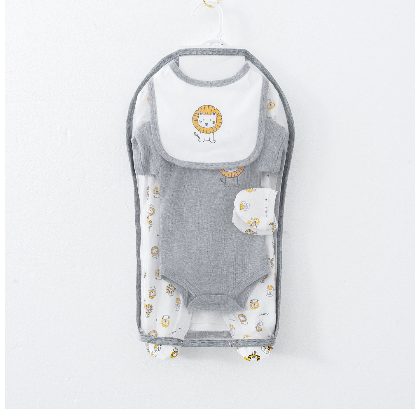 - Lion Print Theme: Adorable lion print design for the whole set, cute and gender-neutral, adding a lovely touch to newborn’s daily wear.