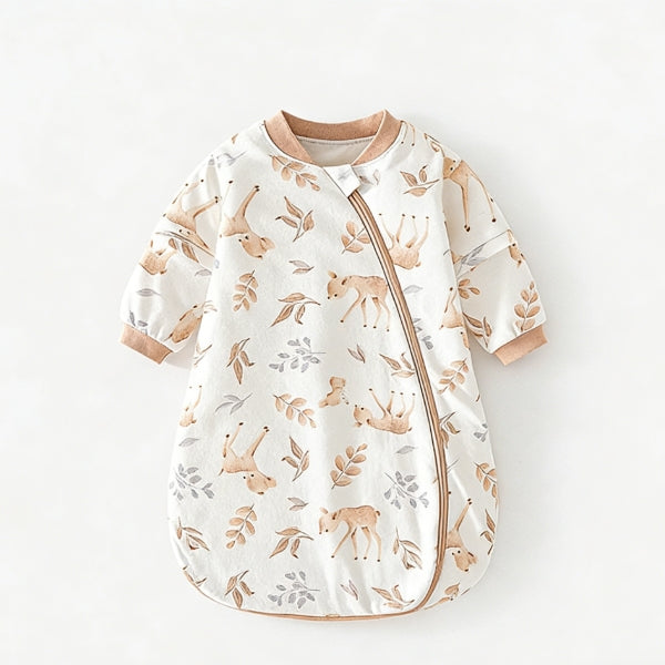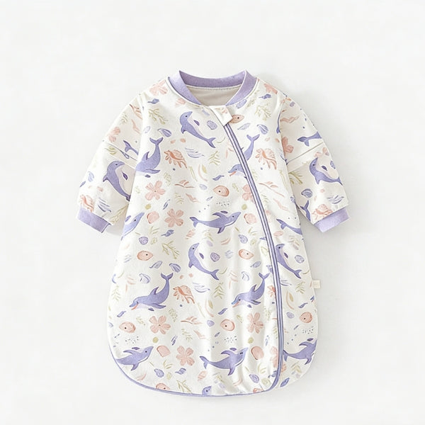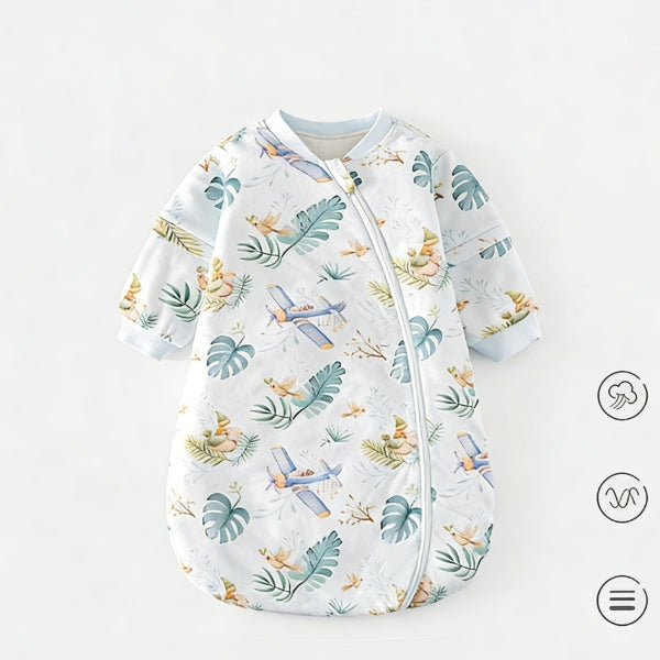 Introducing the Thermostatically Controlled Baby Sleeping Bag 1.5 TOG-15, a cocoon-style baby sleep essential designed for 0-3 years old (S for 0-1Y, M for 1-2Y) with 1.5TOG thickness and 60g per square meter filling of premium patented thermostatic cotton with an invention patent for its thermostatic effect. Crafted with a cotton outer shell and an over 95% pure cotton lining, this thickened sleep bag features a Class A baby safety rating, detachable sleeves, and resin-injection zippers. Boasting professional thermostatic technology, moisture-wicking and sweat-releasing functions, it comes in various vibrant printed patterns and colors, suitable for spring, autumn, and winter. Ideal for babies and toddlers, it offers a secure, cozy sleep experience—add to cart for a parent-trusted sleep solution!